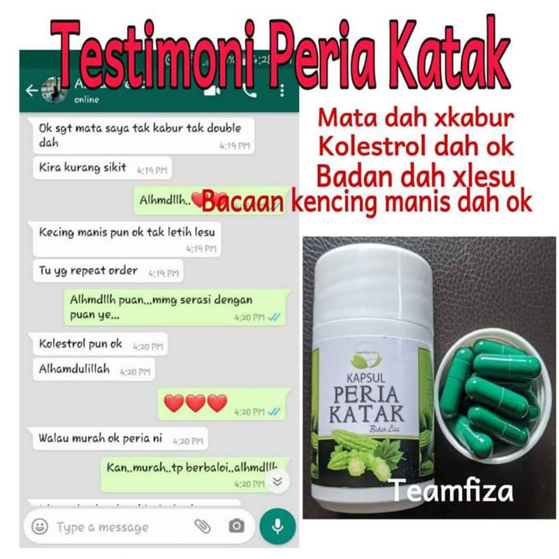 Cuma keperihatinan saya adalah bimbang dengan promosi jurujual juspil Peria Katak yang. Ia juga berpotensi dalam merawat diabetes dengan cara menurunkan paras glukos dalam darah. Dan kapsul atau pil berasaskan peria.
